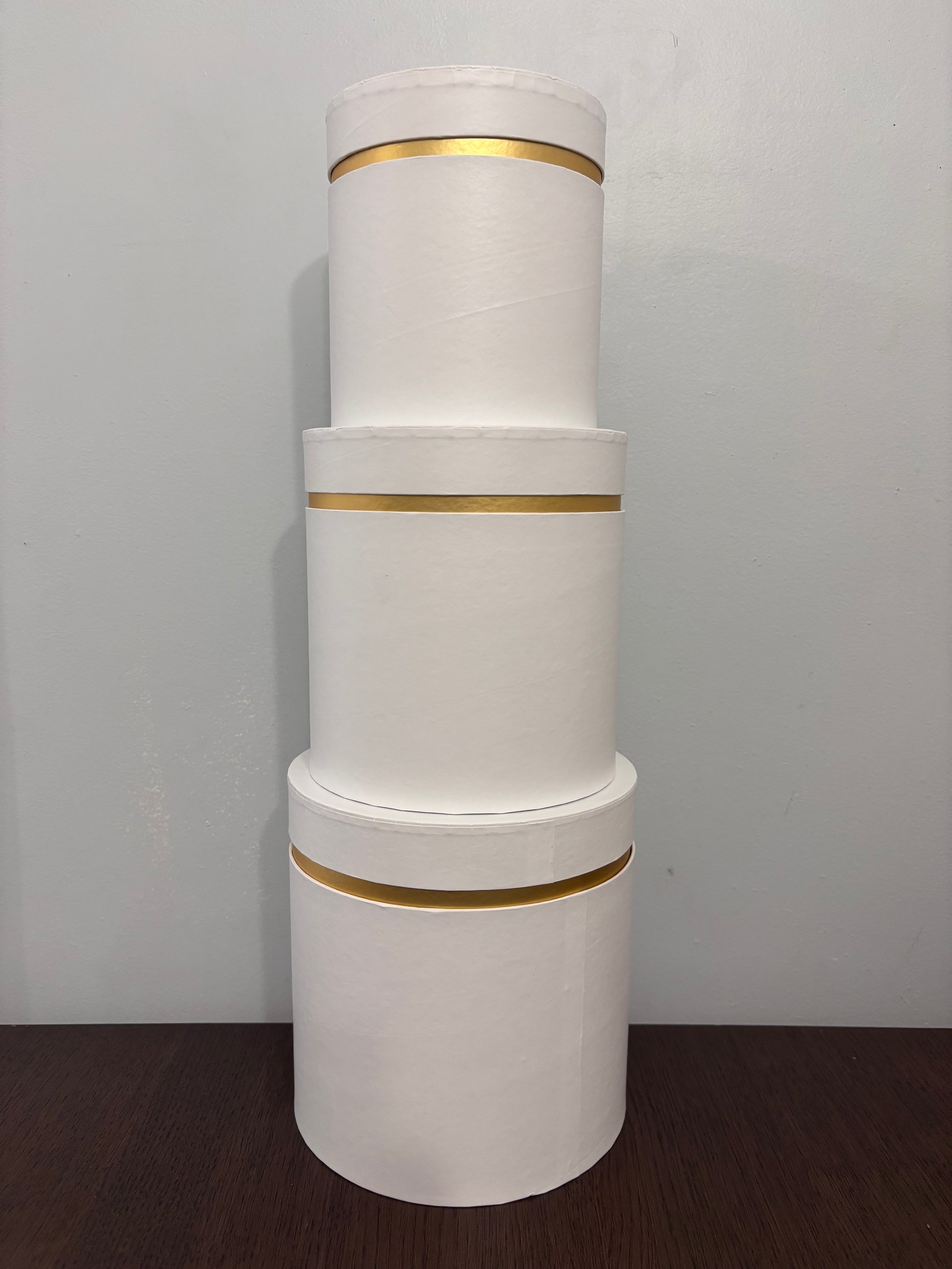 3 PC Set White w/ Gold Stripe Round Box