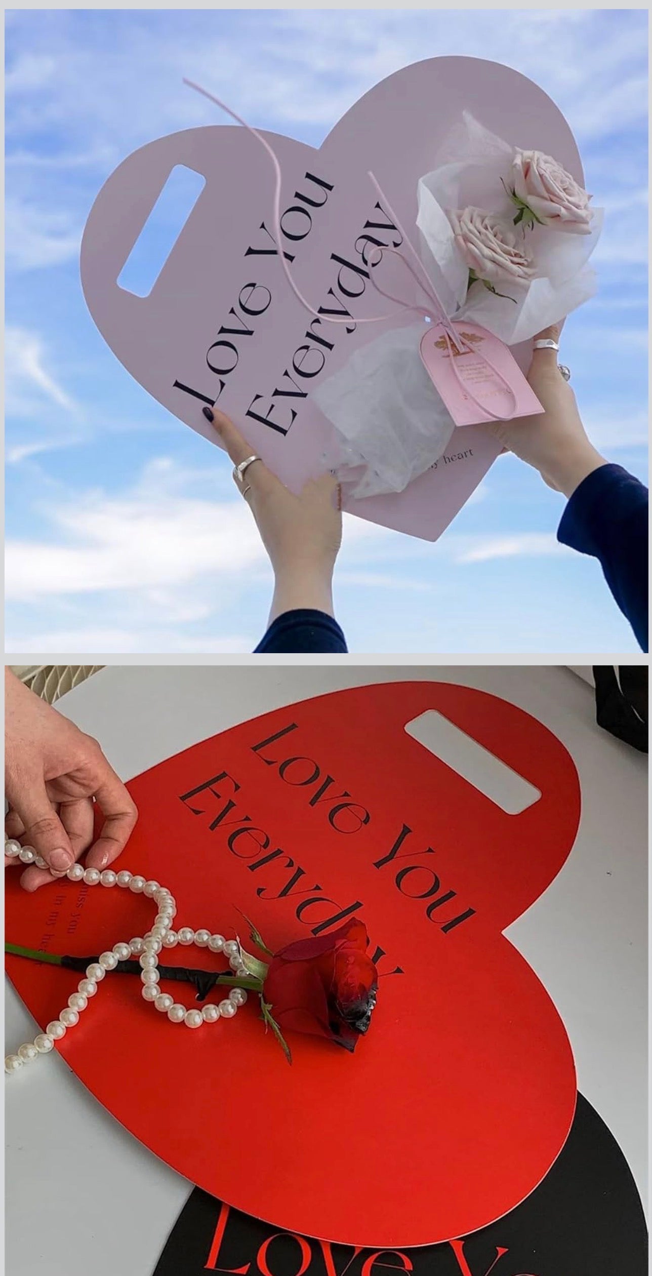 5pc Red Heart Flower Card Paper